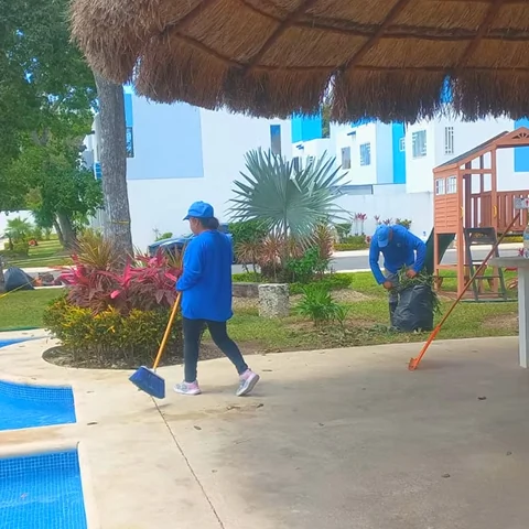 Recolección de basura, limpieza de contenedores, limpieza en frentes de viviendas, limpieza completa en alberca.